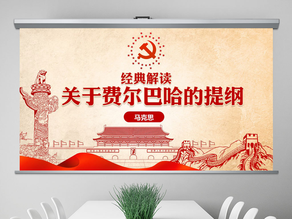 《关于费尔巴哈的提纲》是马克思于1845年春在布鲁塞尔写成的批判费尔巴哈的11条提纲,马克思生前未曾发表。其原题为《关于费尔巴哈》,论述的中心是实践问题。马克思在批判费尔巴哈和一切旧唯物主义的基础上概述了自己的新的世界观。恩格斯在1888年将其首次发表。